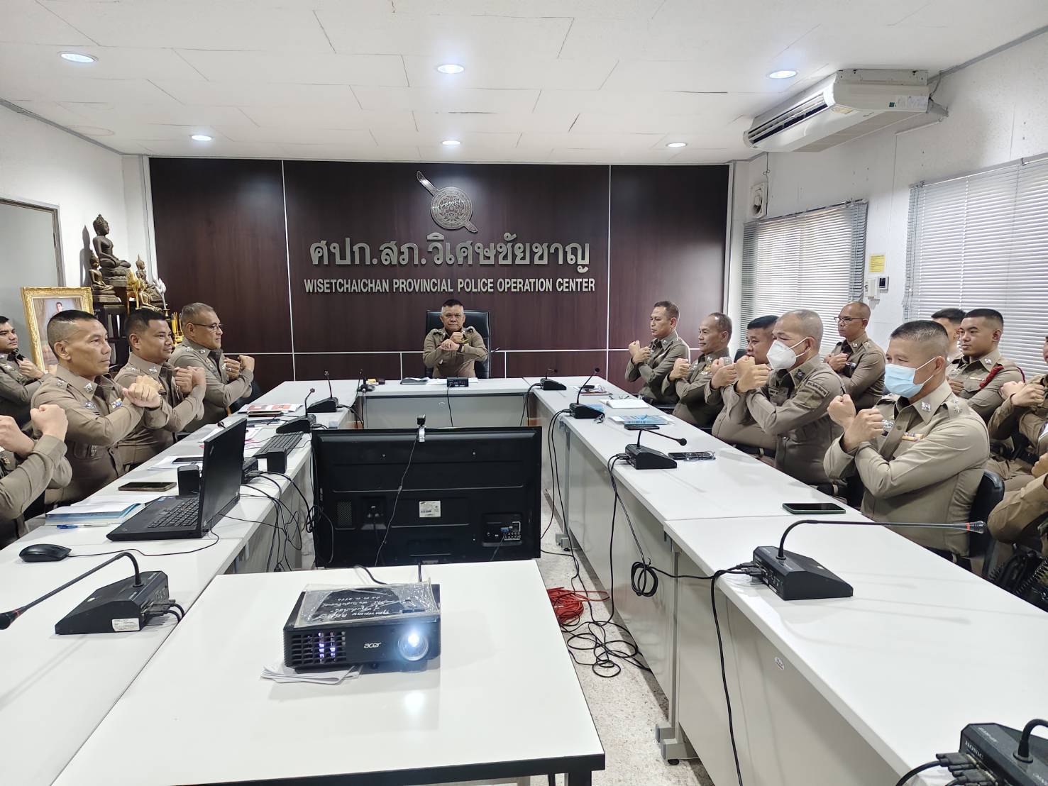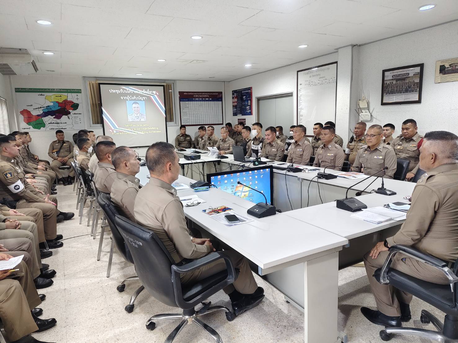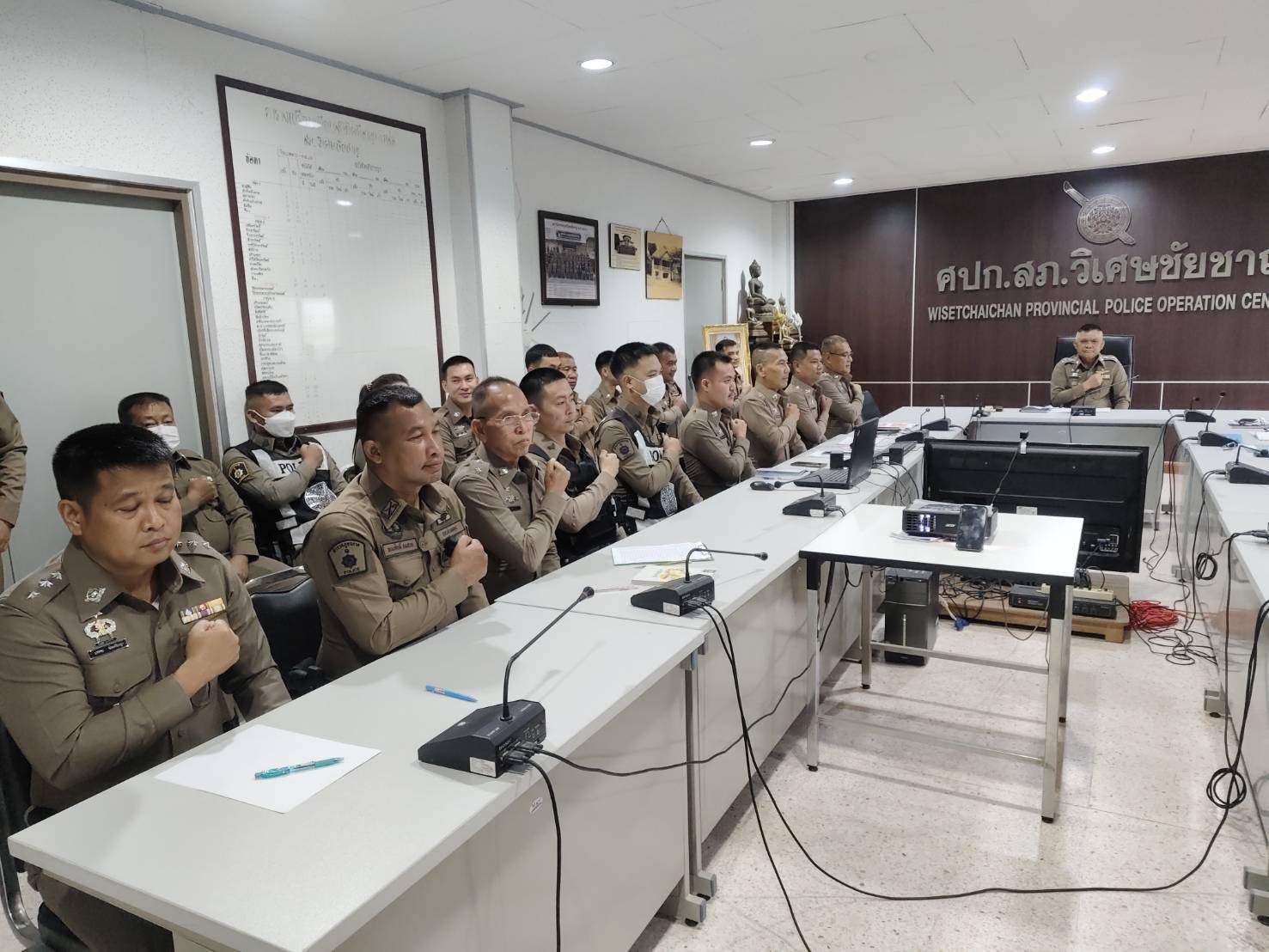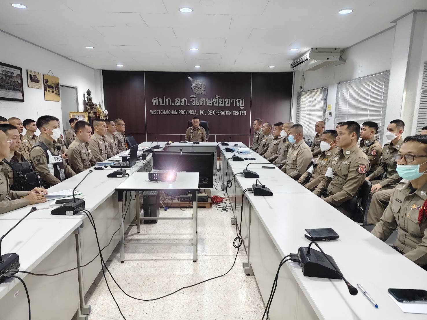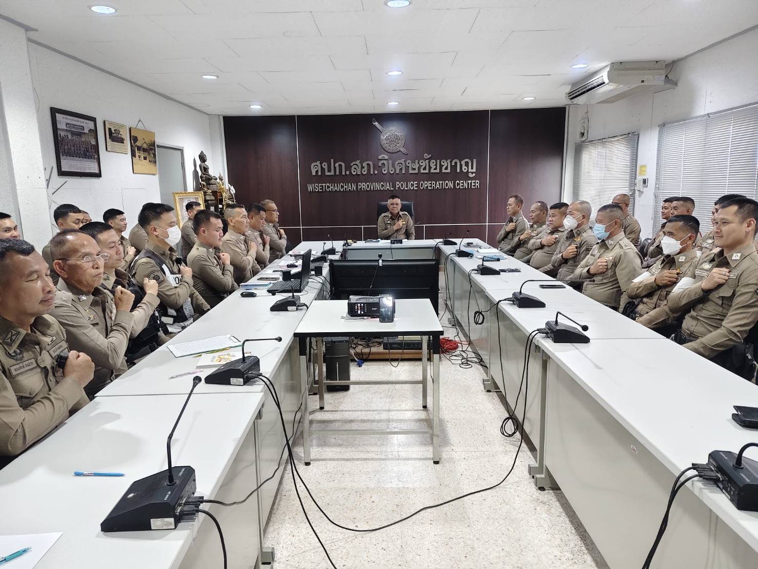 วันนี้ ( 14 มี.ค.68 ) เวลา 13.00 น. พ.ต.อ.ศุภกฤช เดือนแจ้งรัมย์ ผกก.สภ.วิเศษชัยชาญ ,พ.ต.ท.ประภาส พรมคล้าย รอง ผกก.ป.สภ.วิเศษชัยชาญ ,พ.ต.ท.รังสันต์ ทศไชย รอง ผกก.(สอบสวน) สภ.วิเศษชัยชาญ ,พ.ต.ท.สฤษฎ์พงศ์ จุลพันธ์ สวป.สภ.วิเศษชัยชาญ ,พ.ต.ท.ประวิทย์ หมื่นสุนทร สว.อก.สภ.วิเศษชัยชาญ ,พ.ต.ท.ชลพรรษ ขวัญศรี สว.(สอบสวน) สภ.วิเศษชัยชาญ ,พ.ต.ท.ประพันธ์ จำปานวน สว.(สอบสวน) สภ.วิเศษชัยชาญ หน.ห้องคดี ,พ.ต.ท.ทรงพล พันธ์แก่น สว.สส.สภ.วิเศษชัยชาญ พร้อมข้าราชการตำรวจ สภ.วิเศษชัยชาญ ว.28 ประชุมรับนโยบายและข้อสั่งการฯ จากผู้บังคับบัญชา ณ ห้องประชุม ชั้น 3 สภ.วิเศษชัยชาญ