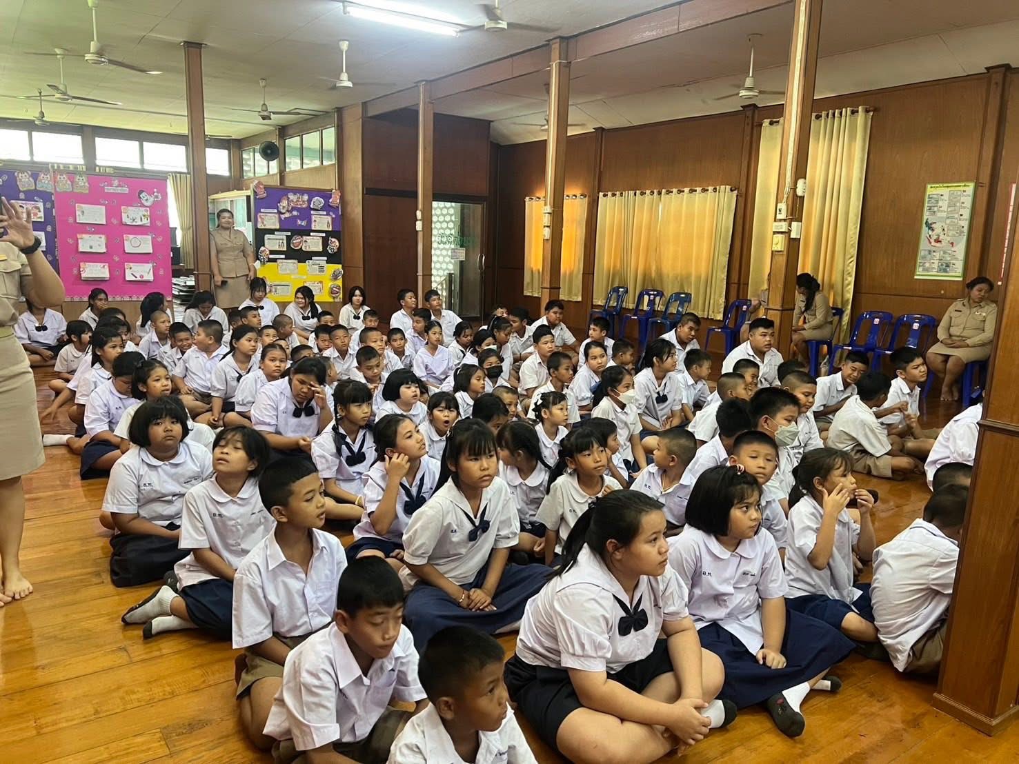 และมีอบรมให้ความรู้เรื่อง ” ยาเสพติด บุหรี่ บุหรี่ไฟฟ้า กฎจราจรและการสวมหมวกนิรภัย “ ให้กับนักเรียน 🚭✨ ณ หอประชุมโรงเรียนวัดอบทมฯ