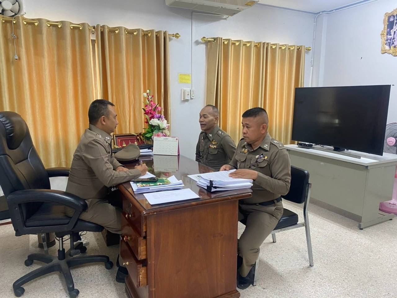 วันที่ 19 มี.ค.68 เวลา 09.00 น. พล.ต.ต.สราวุธ จินดาคำ ผบก.กต.1 จต. พ.ต.อ.ชัชวาลย์ ทิพย์ชัย รอง ผบก.กต.1 จต. พ.ต.อ.ปัญญา ดำเล็ก ผกก.ฝสต.1 กต.1 จต. พ.ต.ท.เกรียงศักดิ์ นันทวงศ์ รอง ผกก.ฝสต.2 กต.1 จต. พ.ต.ท.สุรศักดิ์ สิทธิธีรกุล สว.ฝสต.2 จต. ว่าที่ พ.ต.ท.ศุภชัย แต้มแก้ว สว.ฝสต.1 กต.1 จต. ว่าที่ พ.ต.ท.อำนาจ จำปาพันธ์ สว.ฝสต.2 กต.1 จต. พร้อมคณะตรวจราชการ ร่วมตรวจราชการสถานีประจำปีงบประมาณ 2568 ณ สถานีตำรวจภูธรวิเศษชัยชาญ และตรวจกำชับเรื่องการประเมินความโปร่งใสในภาครัฐ ของสำนักงานตำรวจแห่งชาติ (ITA)