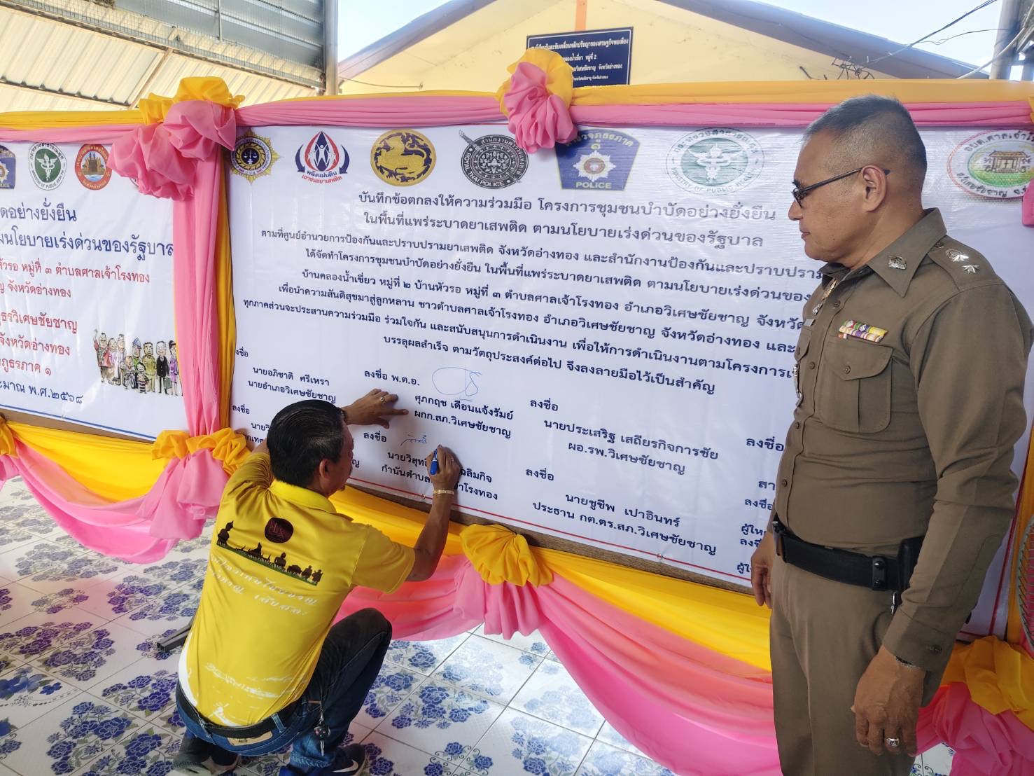 วันที่ 12 มีนาคม 2568 เวลา 14.00 น. พ.ต.อ.ศุภกฤช เดือนแจ้งรัมย์ ผกก.สภ.วิเศษชัยชาญ ,พ.ต.ท.ประภาส พรมคล้าย รอง ผกก.ป.สภ.วิเศษชัยชาญ ,พ.ต.ท.สฤษฏ์พงศ์ จุลพันธ์สวป.สภ.วิเศษชัยชาญ หัวหน้าชุดปฏิบัติการฯ พร้อมด้วยชุดปฏิบัติการและข้าราชการตำรวจ สภ.วิเศษชัยชาญ ดำเนินการพิธีเปิดโครงการตำบลยั่งยืน พิธีร่วมลงนามใน MOU ข้อตกลงร่วมกับทุกภาคส่วนประสานความร่วมมือกัน เพื่อสนับสนุนโครงการเพื่อเป็นไปอย่างมีประสิทธิภาพ จนบรรลุผลสำเร็จ