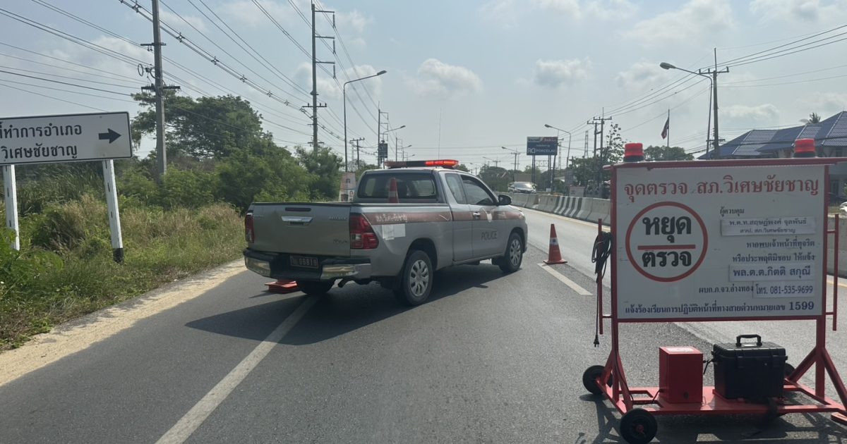 พร้อมกำลังจราจร รวม 8 นาย ว.43 จุดตรวจกวดขันวินัยจราจร ตรวจวัดแอลกอฮอล์ บนถนนโพธิ์พระยา-ท่าเรือ ทล.3195 หน้า สภ.วิเศษชัยชาญ ต.ศาลเจ้าโรงทอง อ.วิเศษชัยชาญ จ.อ่างทอง