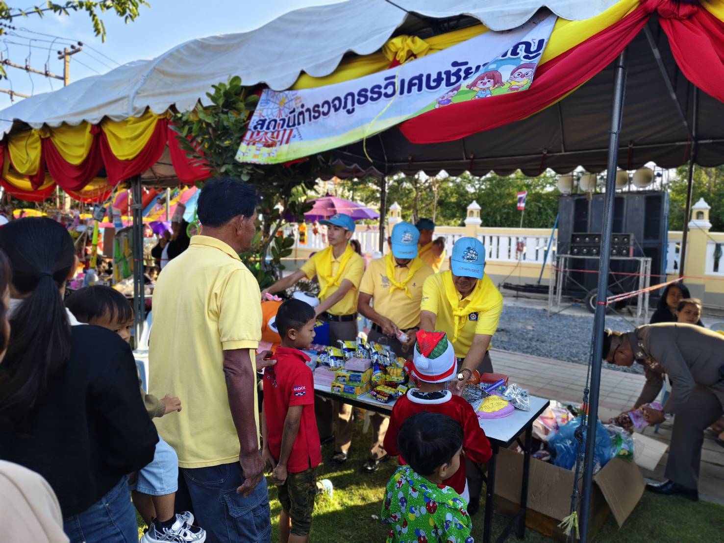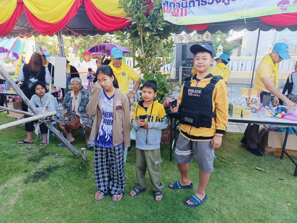 🔹ดำเนินกิจกรรมจิตสาอา แจกขนม ของเล่น เครื่องเขียน ให้กับเด็กและเยาวชน และได้สร้างแรงบันดาลใจ”ตำรวจน้อย”ให้กับเด็กและเยาวชน เนื่องในวันเด็กประจำปี 2568 ณ วัดนางในธัมมิการาม ต.ศาลเจ้าโรงทอง อ.วิเศษชัยชาญ จ.อ่างทอง