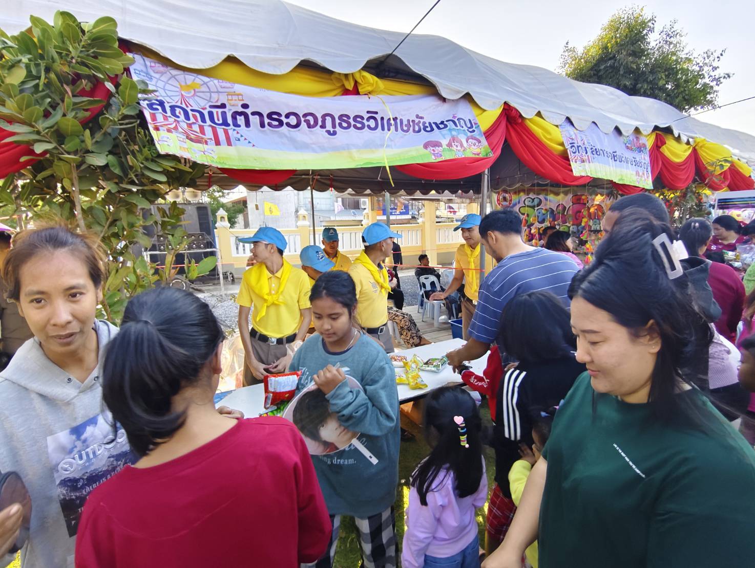พ.ต.ท.ยงยุทธ สิมมะลา รรท.รอง ผกก.ป.สภ.วิเศษชัยชาญ พ.ต.ท.ประวิทย์ หมื่นสุนทร สว.อก.สภ.วิเศษชัยชาญ พร้อมชุดจิตอาสา สภ.วิเศษชัยชาญ 🔹ดำเนินกิจกรรมจิตสาอา แจกขนม ของเล่น เครื่องเขียน ให้กับเด็กและเยาวชน และได้สร้างแรงบันดาลใจ”ตำรวจน้อย”ให้กับเด็กและเยาวชน เนื่องในวันเด็กประจำปี 2568