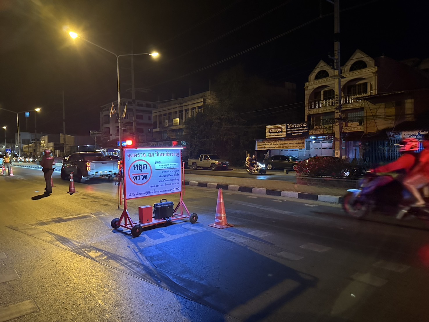 พ.ต.ท.ยงยุทธ สิมมะลา รรท.รอง ผกก.ป.ฯ ว.43 จุดตรวจวัดแอลกอฮอล์บนถนนโพธิ์พระยา-ท่าเรือ ทล.3195 พร้อมกำลังจราจร รวม 8 นาย