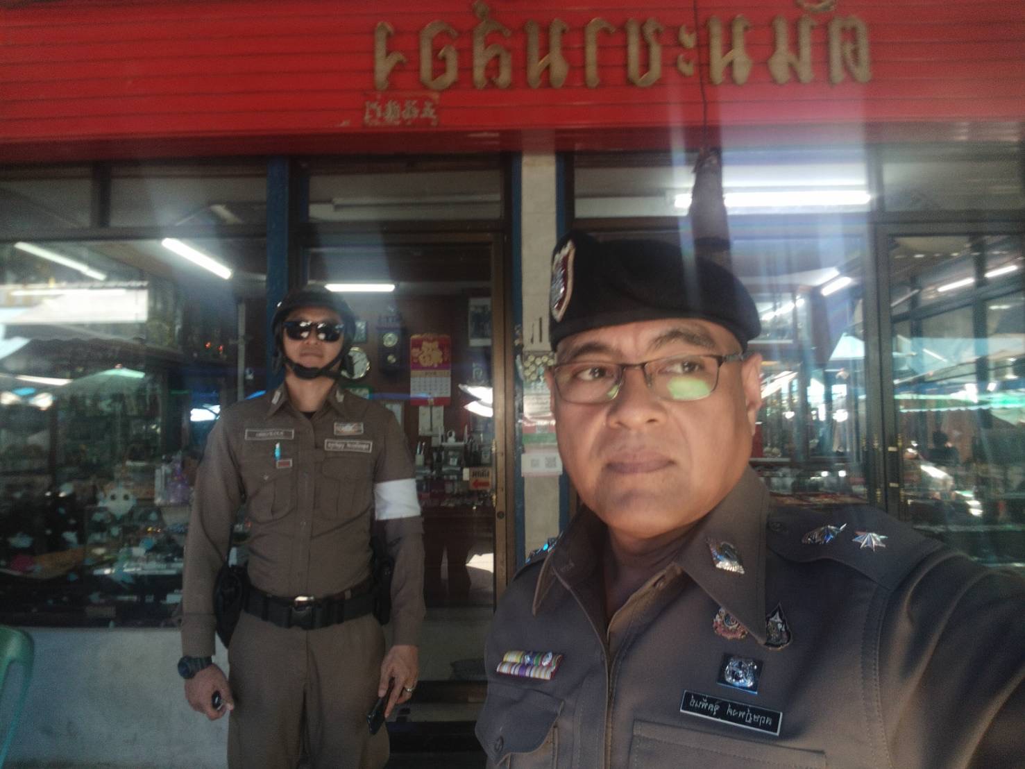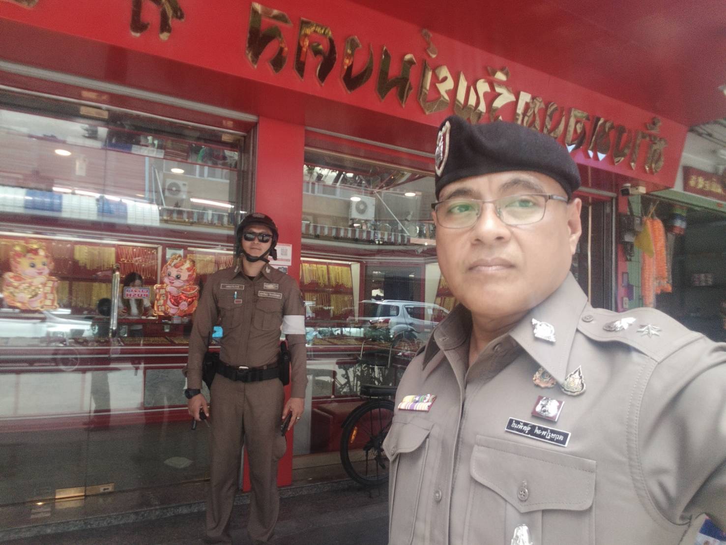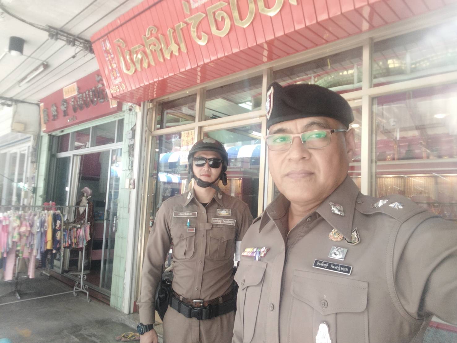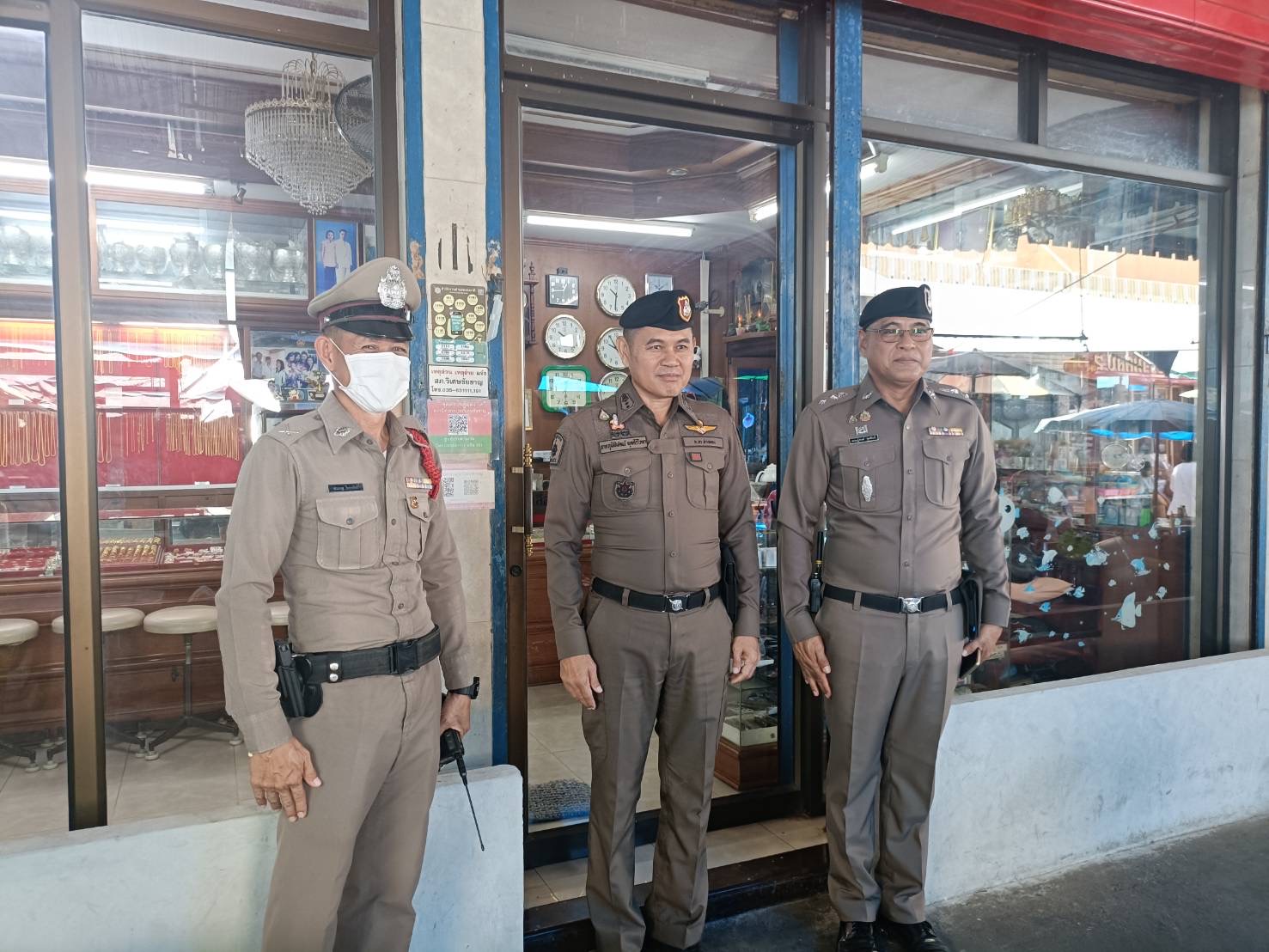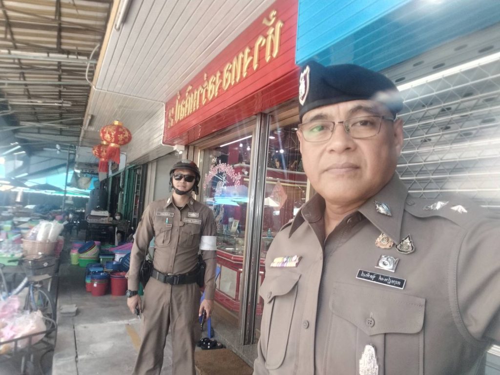 พ.ต.อ.ภาคภูมิพิพัฒน์ พูลศิริโภคา รอง ผบก.ภ.จว.อ่างทอง ตรวจเยี่ยม ป้องกันเหตุ ร้านทอง ตลาดศาลเจ้าโรงทอง อ.วิเศษชัยชาญ จังหวัดอ่างทอง