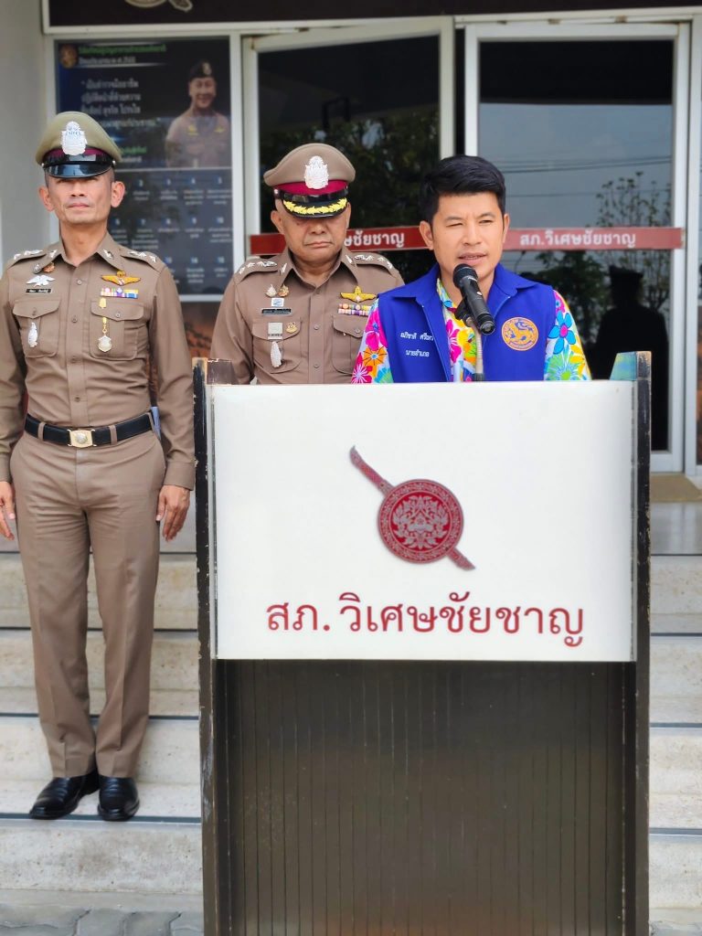 พลังใจจากท้องถิ่น: พ.ต.อ.ศุภกฤช เดือนแจ้งรัมย์ ผู้กำกับการสถานีตำรวจภูธรวิเศษชัยชาญ พร้อม นายอภิชาติ ศรีเหรา นายอำเภอวิเศษชัยชาญ สร้างความมั่นใจ ปล่อยแถวเทศกาลถนนข้าวสุก ปี 2568