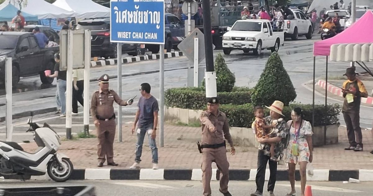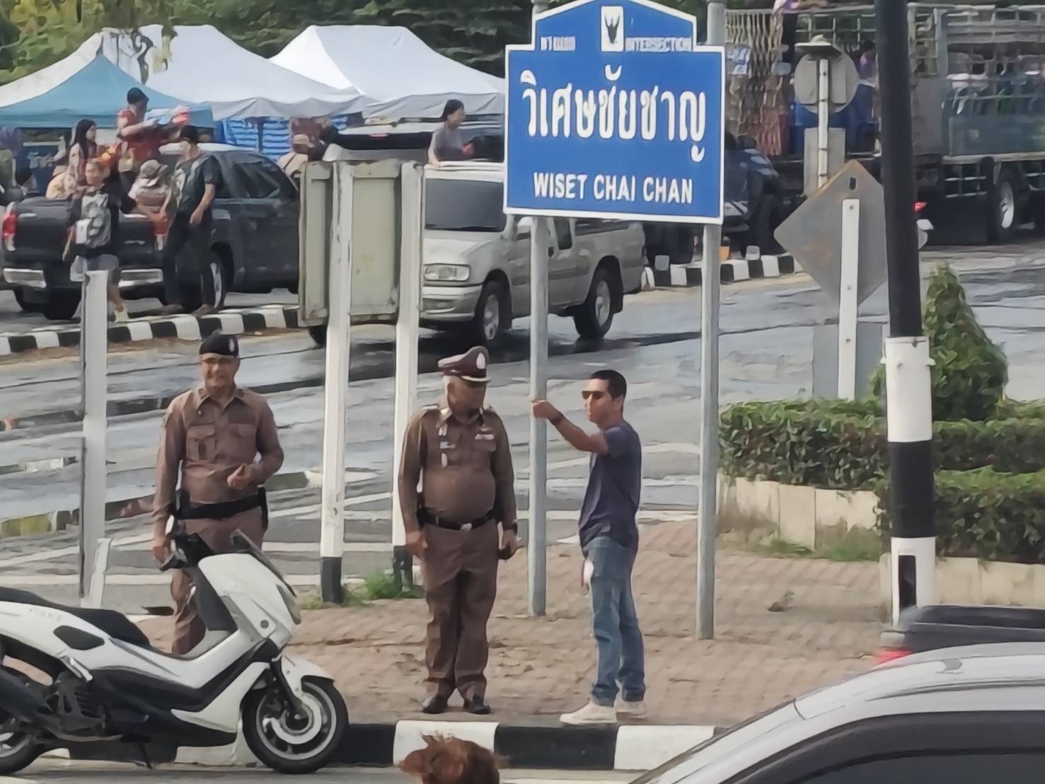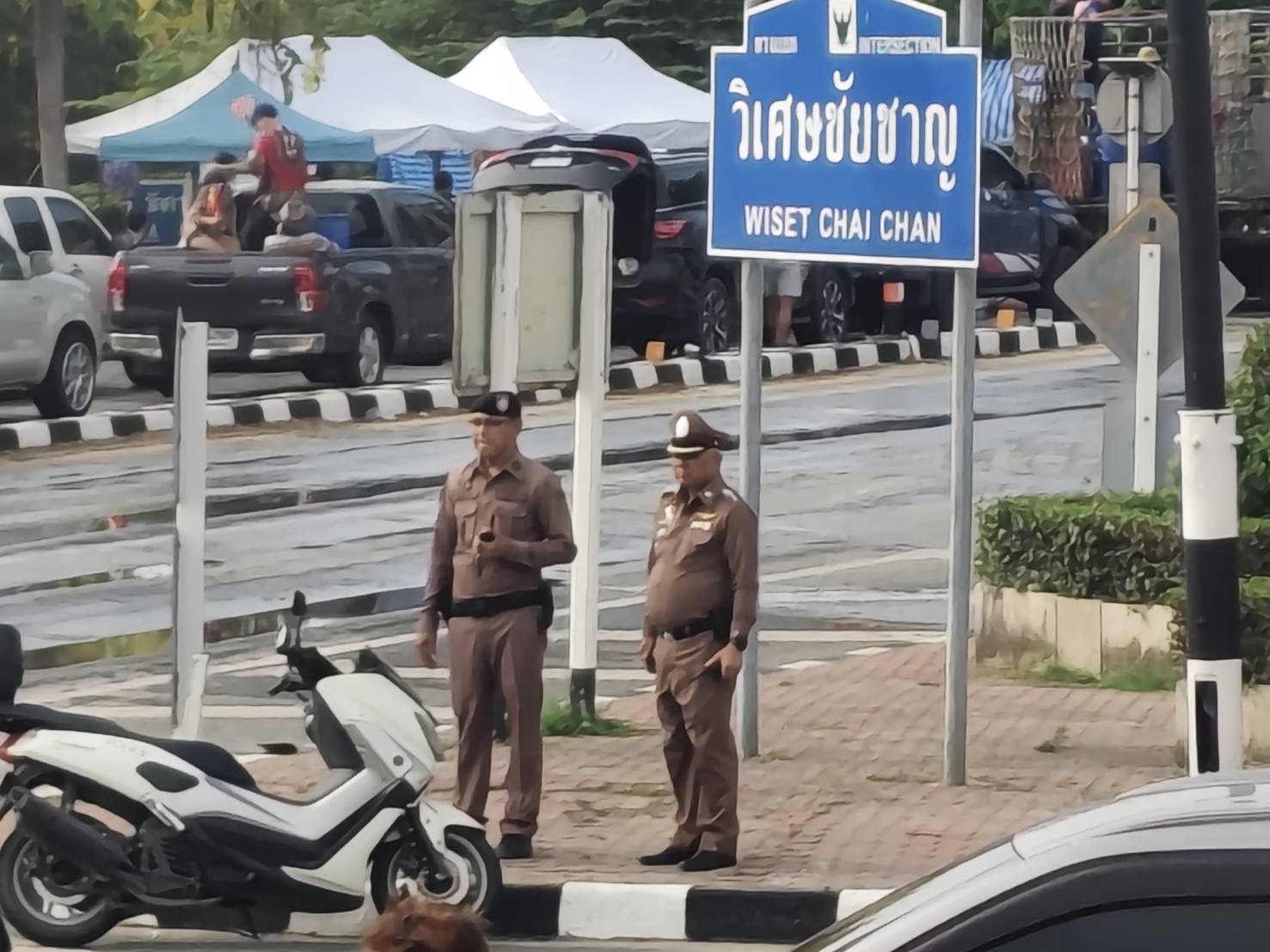 พ.ต.อ.ศุภกฤช เดือนแจ้งรัมย์ผกก.สภ.วิเศษชัยชาญ พร้อม พ.ต.ท.สฤษฏ์พงศ์ จุลพันธ์ สวป.สภ.วิเศษชัยชาญ อำนวยความสะดวกด้านการจราจร และประชาสัมพันธ์นักท่องเที่ยว ที่มาร่วมงานเทศกาลสงกรานต์ อ.วิเศษชัยชาญ จ.อ่างทอง