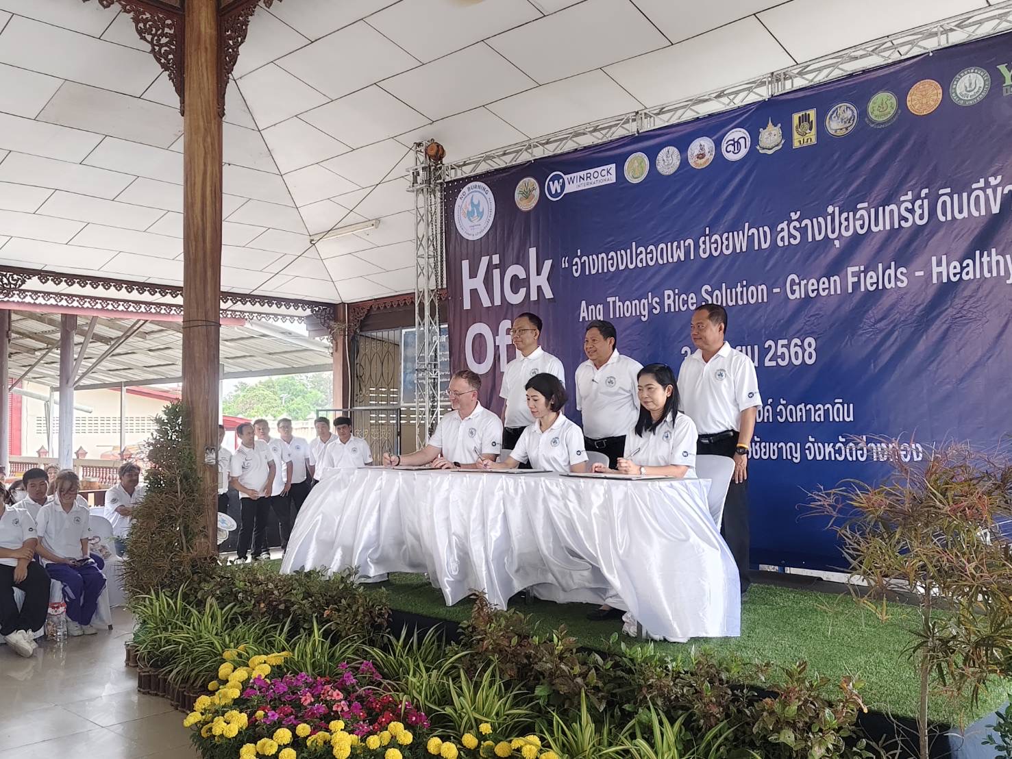 ว.4 ร่วมงาน Kick off “อ่างทองปลอดเผา ย่อยฟาง สร้างปุ๋ยอินทรีย์ ดินดีข้าวงาม ณ ศาลาอเนกประสงค์วัดศาลาดิน ม.12 ต.ม่วงเตี้ย อ.วิเศษชัยชาญ จอ่างทอง
