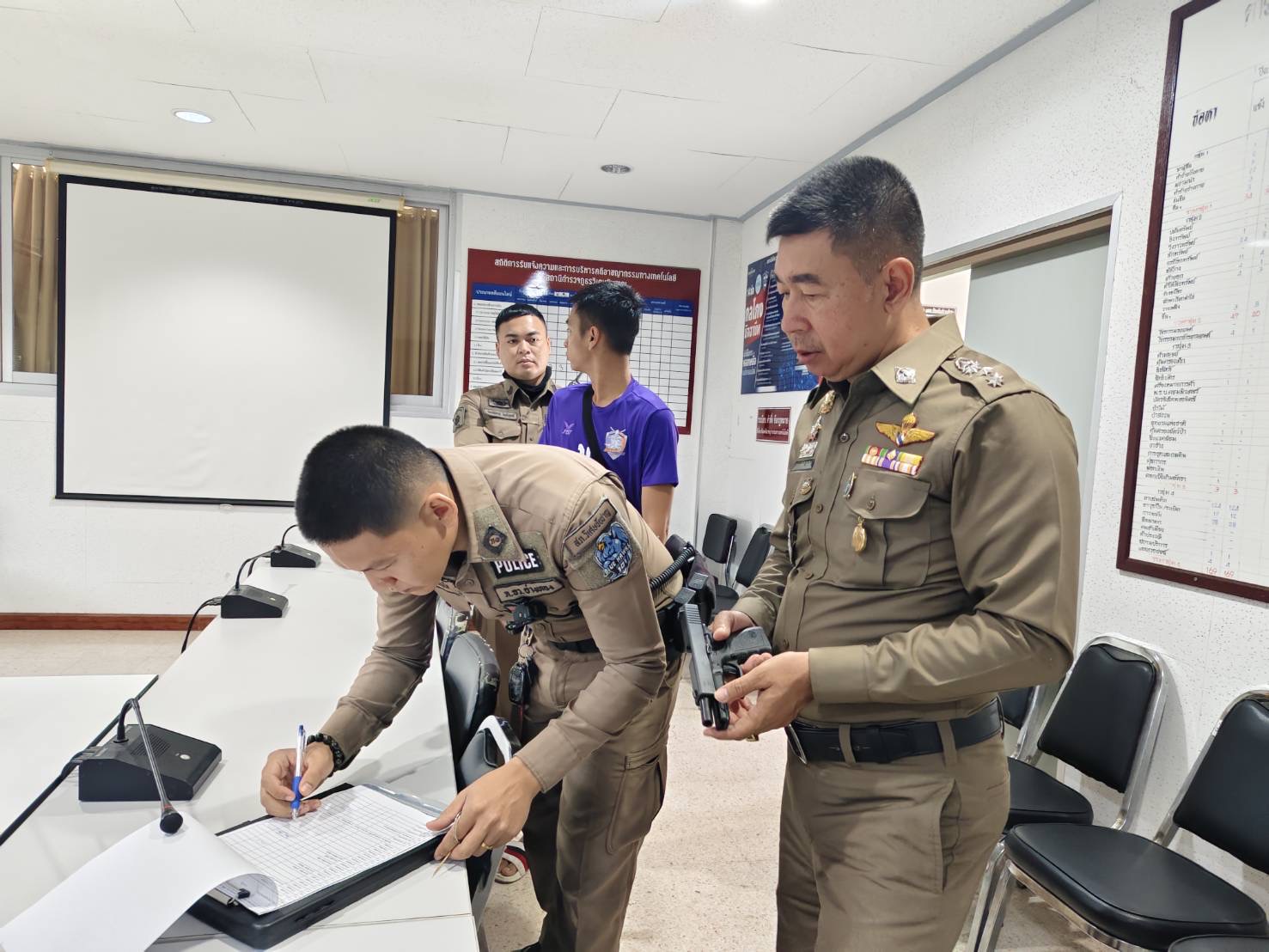 พ.ต.อ.อำนวยพันธ์ นิลน้อย รรท.ผกก.ฯ ตรวจอาวุธปืนของทางราชการฯ
