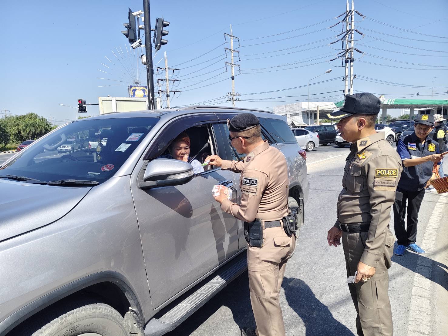 🔹ได้ประชาสัมพันธ์ผู้ใช้รถใช้ถนนให้ใช้ความระมัดระวังในการขับขี่ “ขับขี่ปลอดภัย เมืองไทยไร้อุบัติเหตุ” เมาไม่ขับ โทรไม่ขับ คาดเข็มขัดนิรภัย สวมหมวกกันน็อค พร้อมแจกสิ่งของให้กับประชาชน