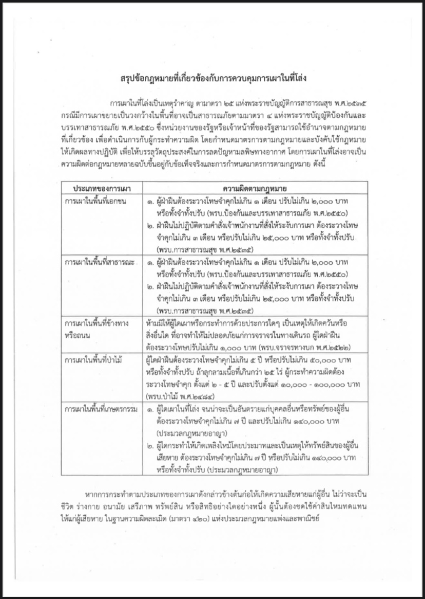 การเผาหญ้า เผาขยะ มีความผิดทางกฎหมาย