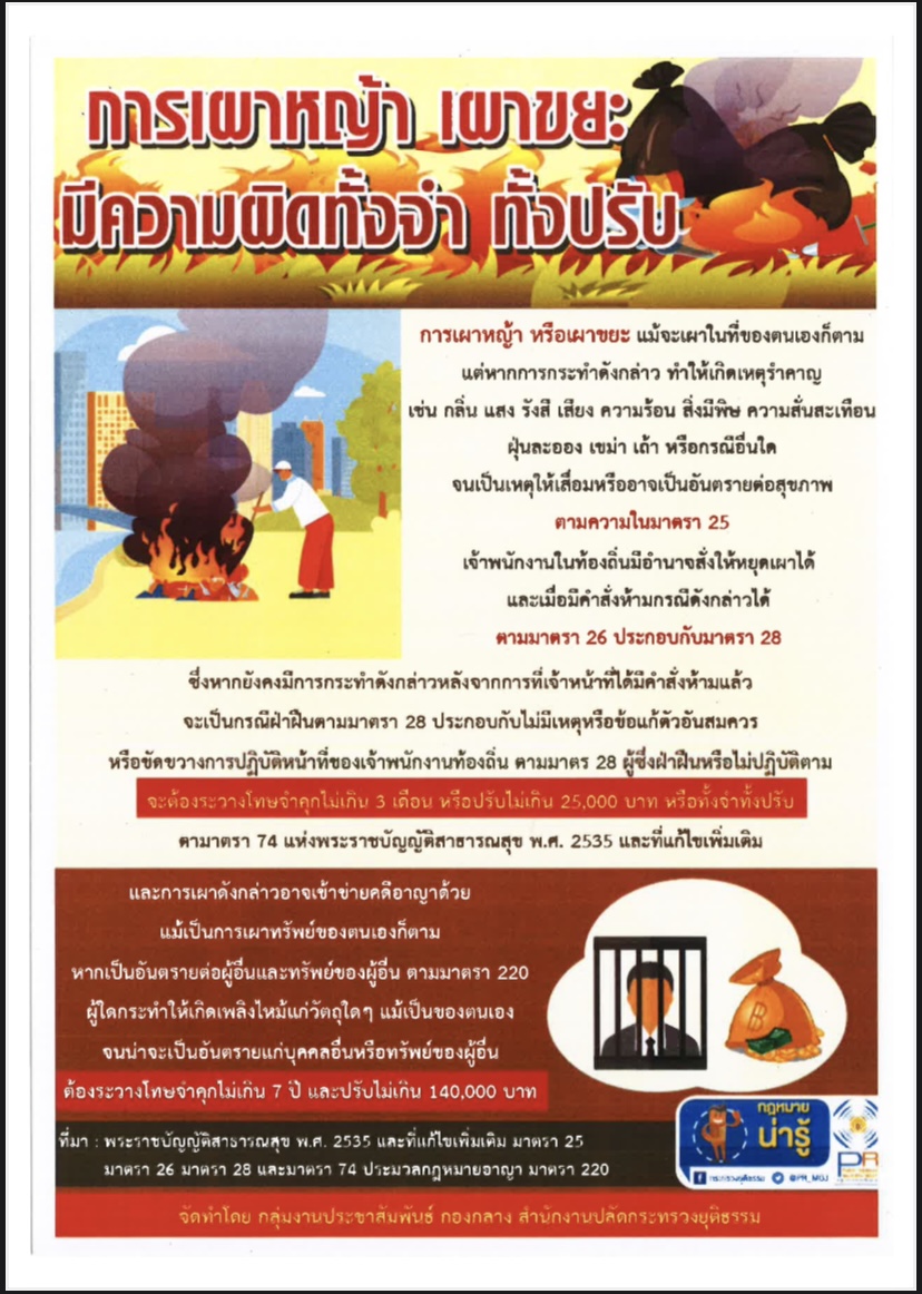 “เผาหญ้า-เผาขยะ มีความผิดทางกฏหมายและยังเป็นสาเหตุของการเกิดฝุ่น”