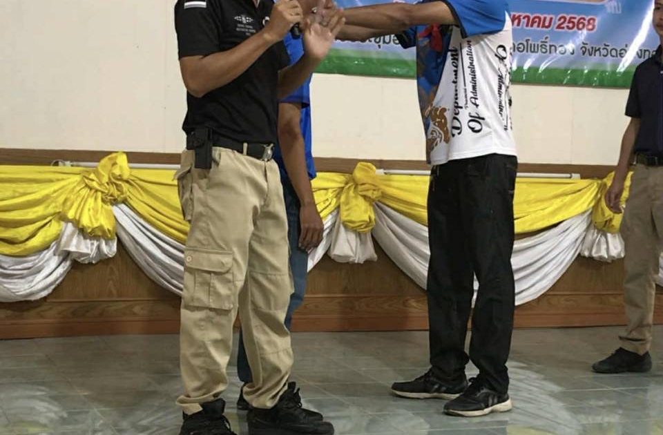 ร.ต.อ.เมฆา ทวีศรี รอง สวป.สภ.วิเศษชัยชาญ และ ส.ต.ต.นิติพงษ์ กลึงวงศ์ ผบ.หมู่(ป.)สภ.วิเศษชัยชาญ ว.4 ฝึกอบรมจัดตั้งชุดรักษา ความปลอดภัยหมู่บ้านอำเภอโพธิ์ทอง