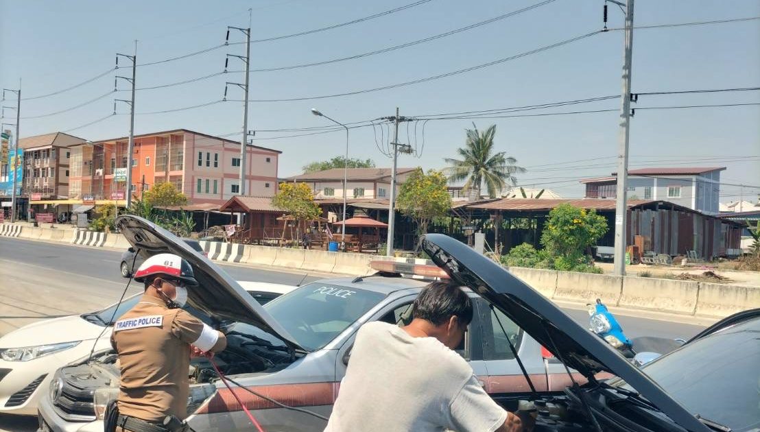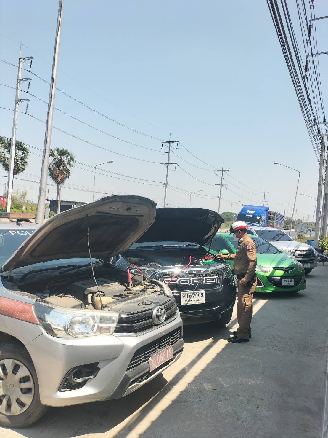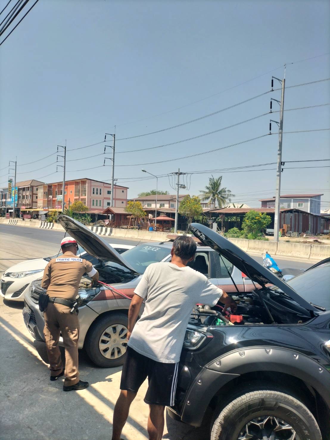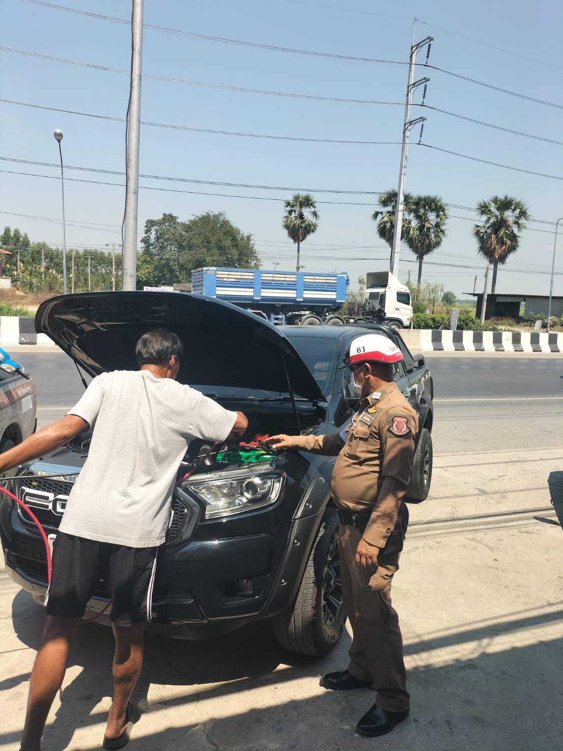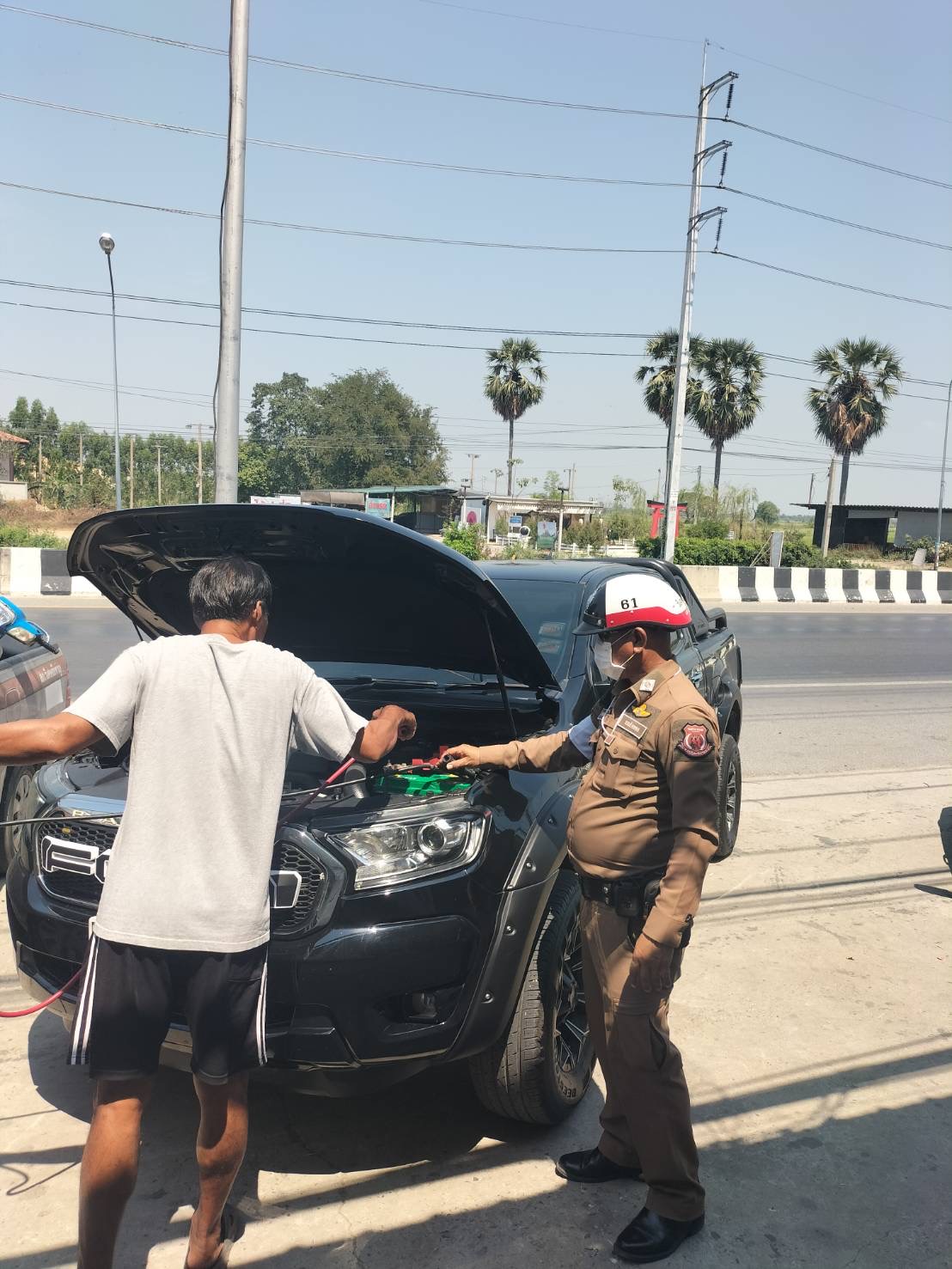 ร.ต.ต.กฤตกร นวลฉวี รอง สว.(ป) ฯ เวรจราจร ให้ การช่วยเหลือรถยนต์แบตเตอรี่หมด โดยการนำรถโดยการนำรถสายตรวจจราจร ไปทำการพ่วงแบตเตอรี่