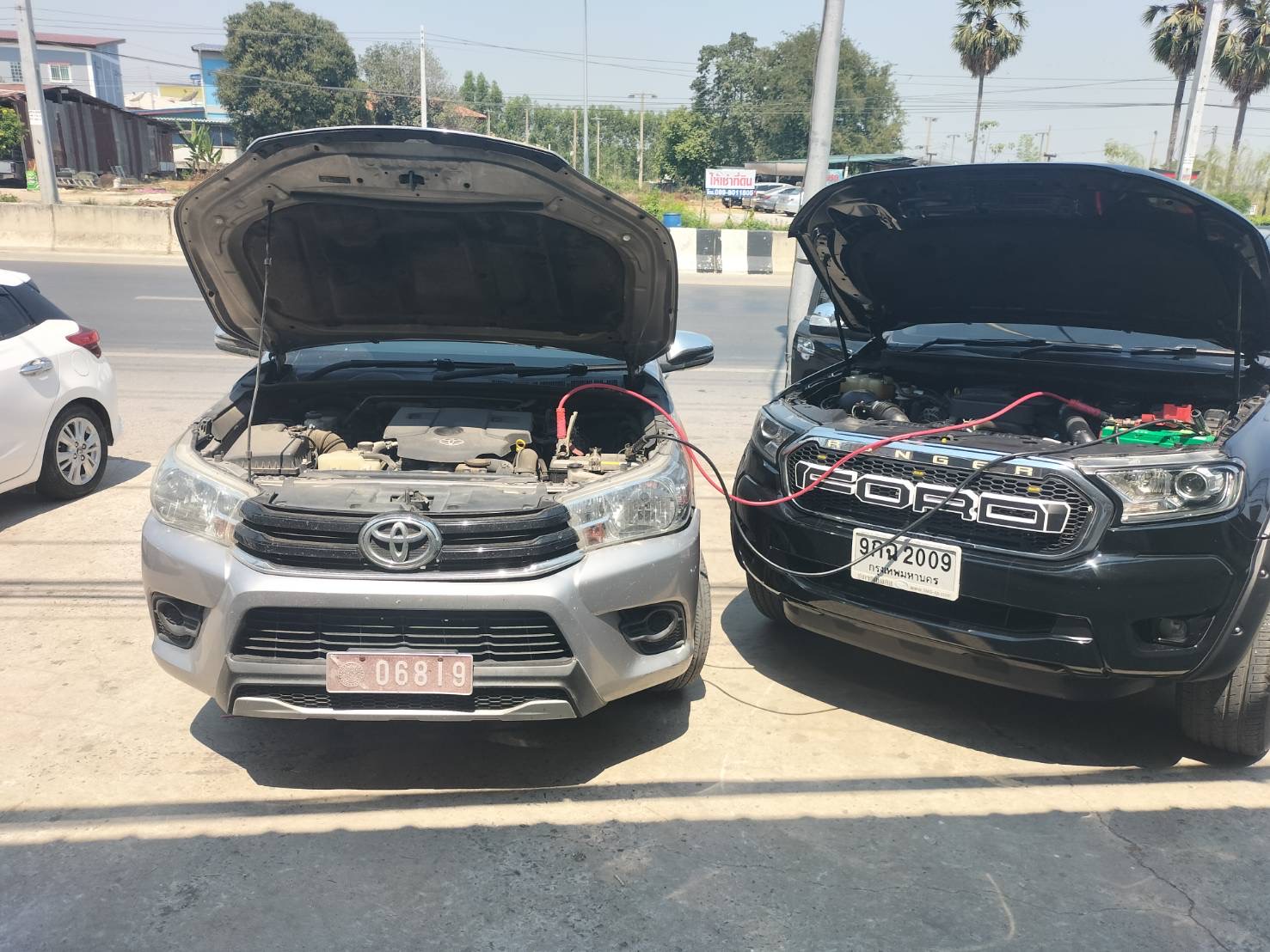 1. ปิดอุปกรณ์ไฟฟ้าทุกชนิดทั้งหมดของรถดับเครื่องยนต์นำรถที่จะพ่วงแบตเตอรี่มาจอดใกล้ๆ ในระยะที่ต่อสายพ่วงได้
