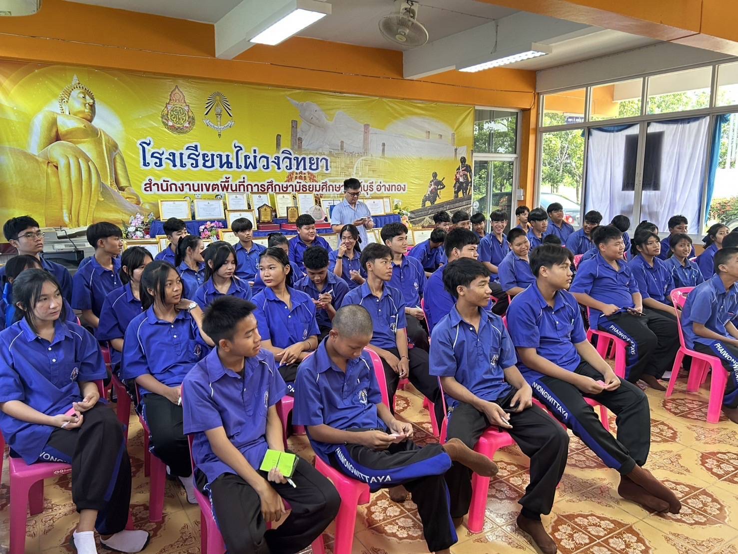 ร่วมบรรยายให้ความรู้โครงการส่งเสริมวินัยจราจร สร้างความปลอดภัย ชุมชนไร้อุบัติเหตุ ณ โรงเรียนไผ่วงวิทยาคม ต.ไผ่วง อ.วิเศษชัยชาญ จ.อ่างทอง