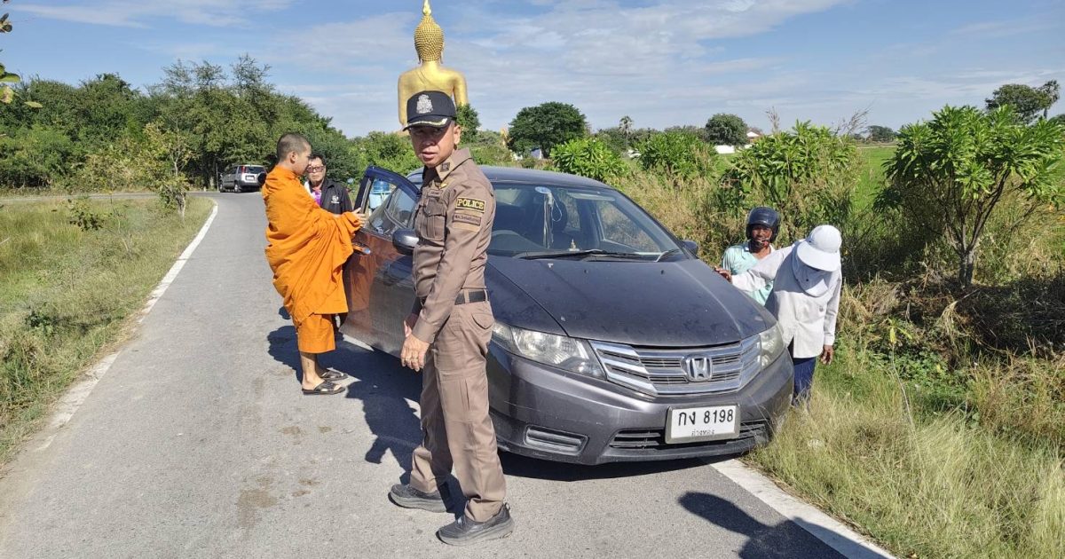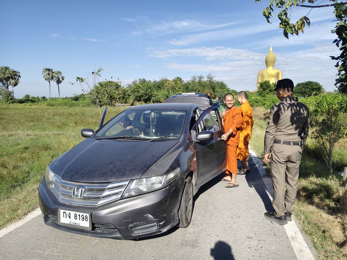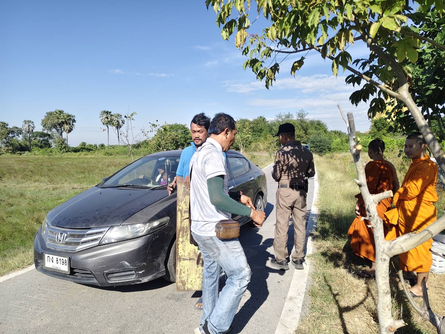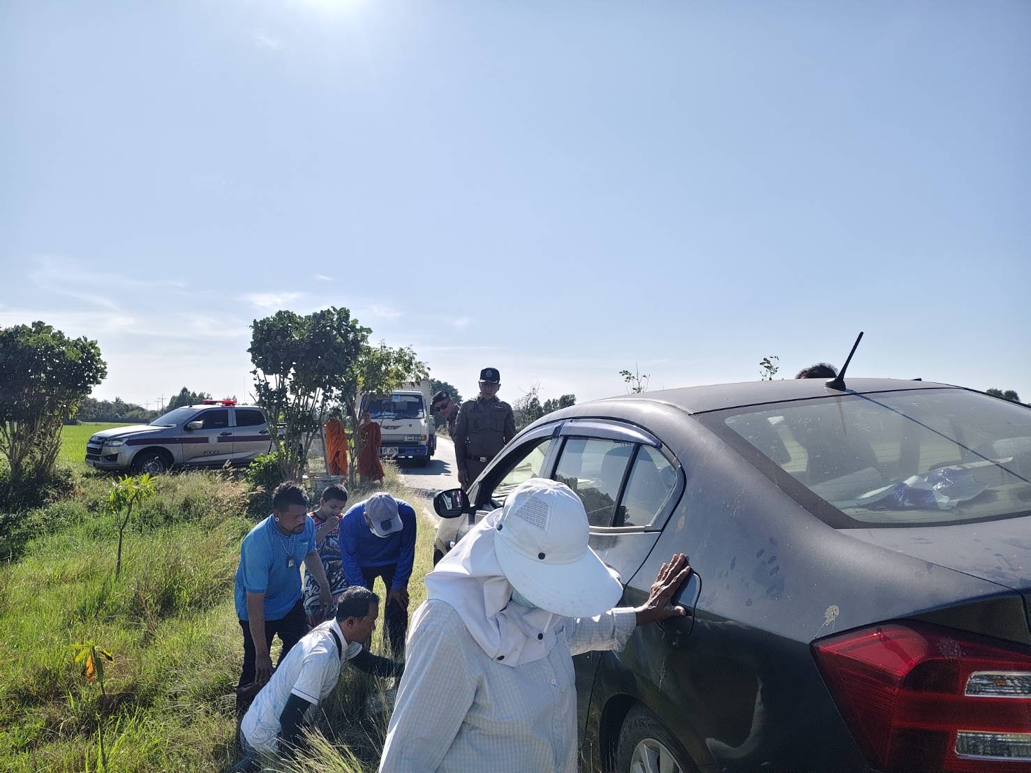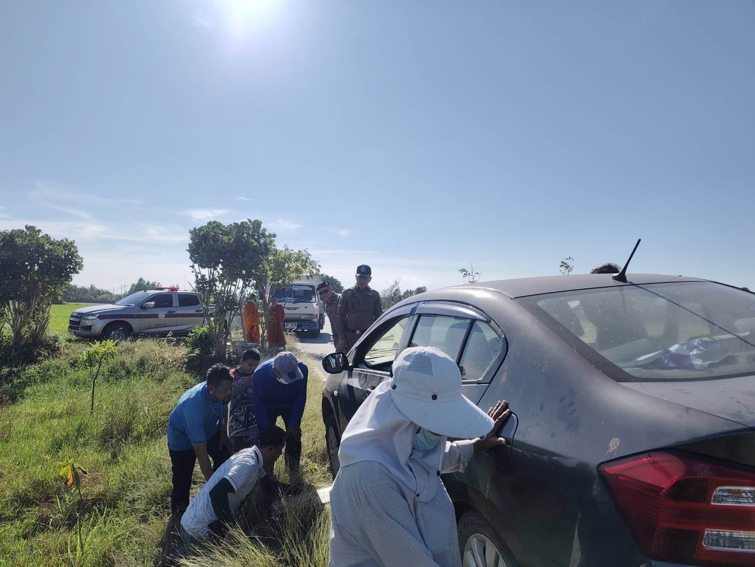 พ.ต.อ.อำนวยพันธ์ นิลน้อย รรท.ผกก.สภ.วิเศษชัยชาญ ,พ.ต.ท.ยงยุทธ สิมมะลา รรท.รอง ผกก.ป.สภ.วิเศษชัยชาญ ให้การช่วยเหลือรถตกถนน