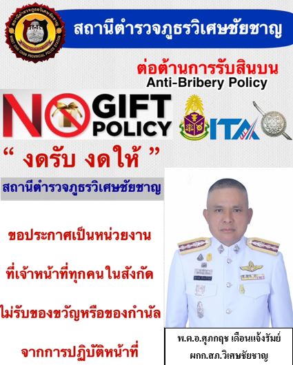 ประกาศเจตนารมณ์ที่จะไม่รับของขวัญหรือของกำนัลทุกชนิดจากการปฏิบัติหน้าที่ (No Gift Policy)